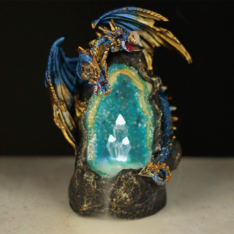Queimador de Incenso Refluxo - Dragão em Gruta de Cristal LED