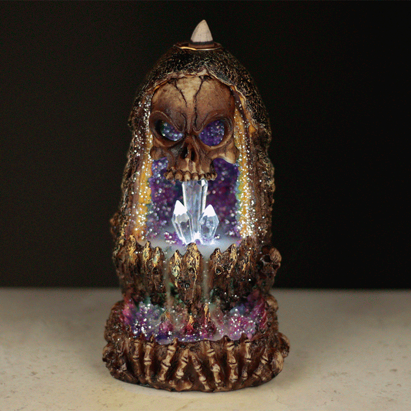 Queimador de Incenso Refluxo - Caveira Gruta de Cristal LED