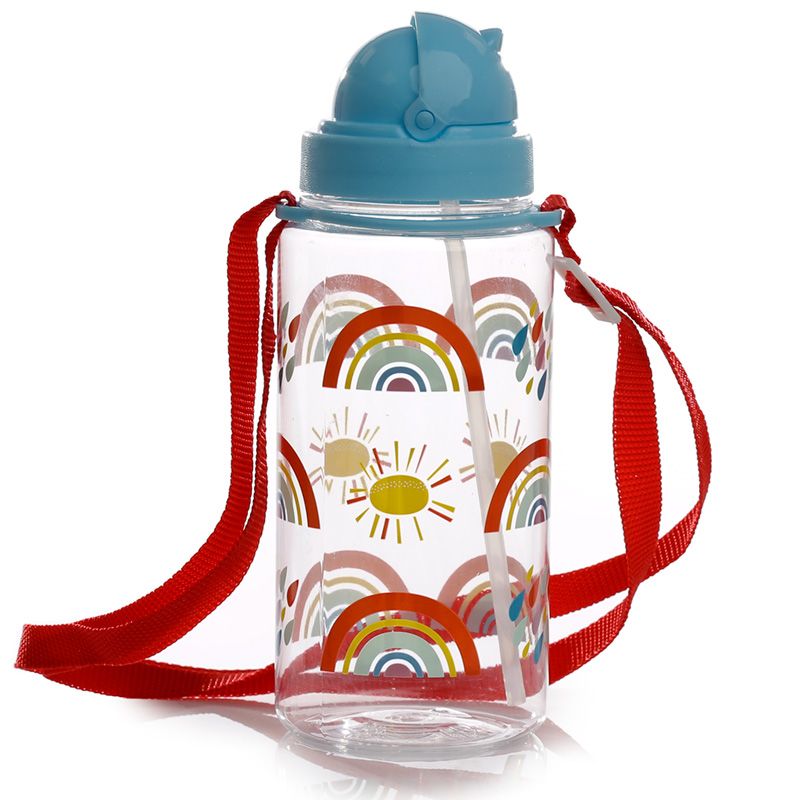 Garrafa de Água Infantil com Palhinha 450ml - Arco-íris