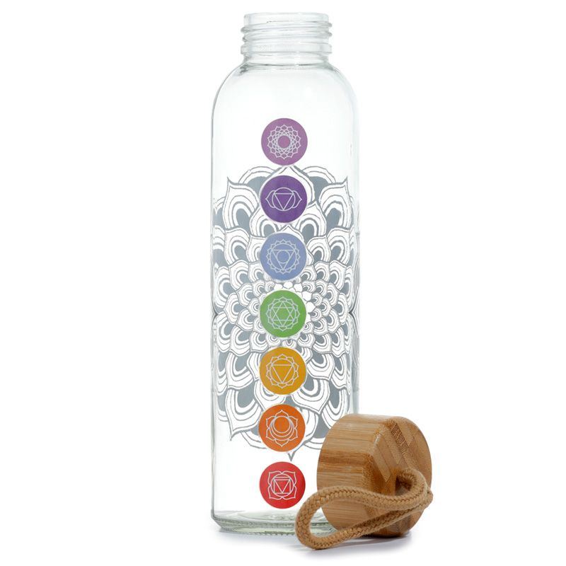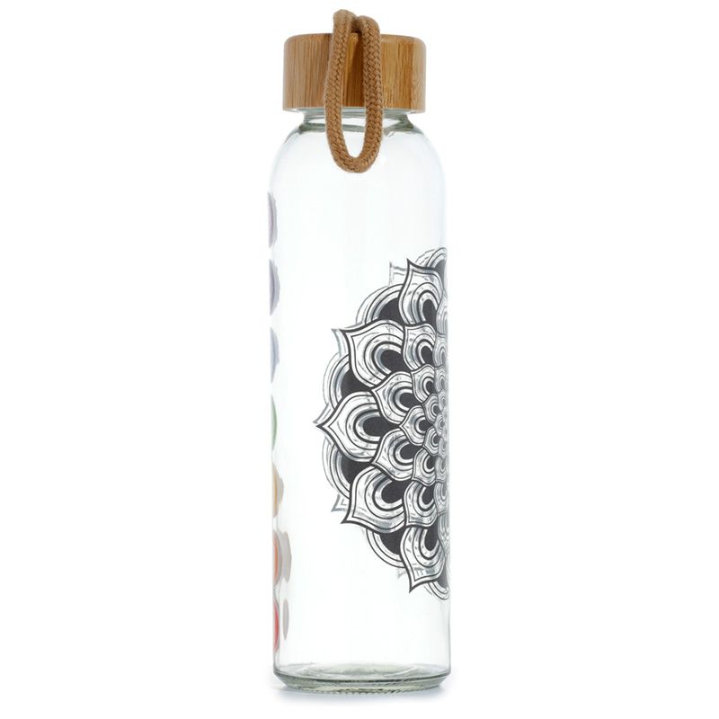 Garrafa de água de vidro reutilizável com tampa de bambu Chakra 500ml