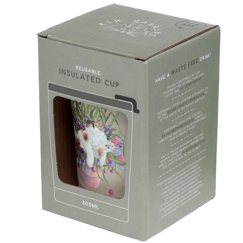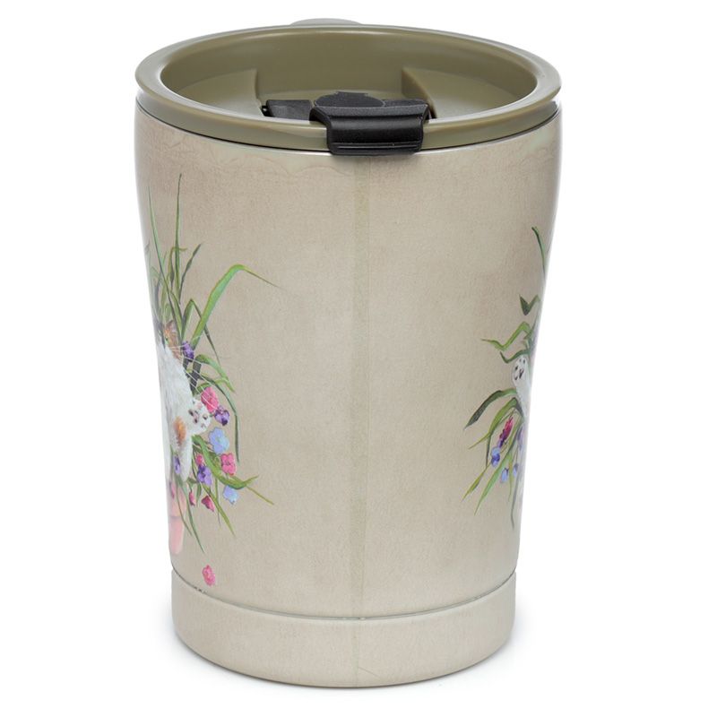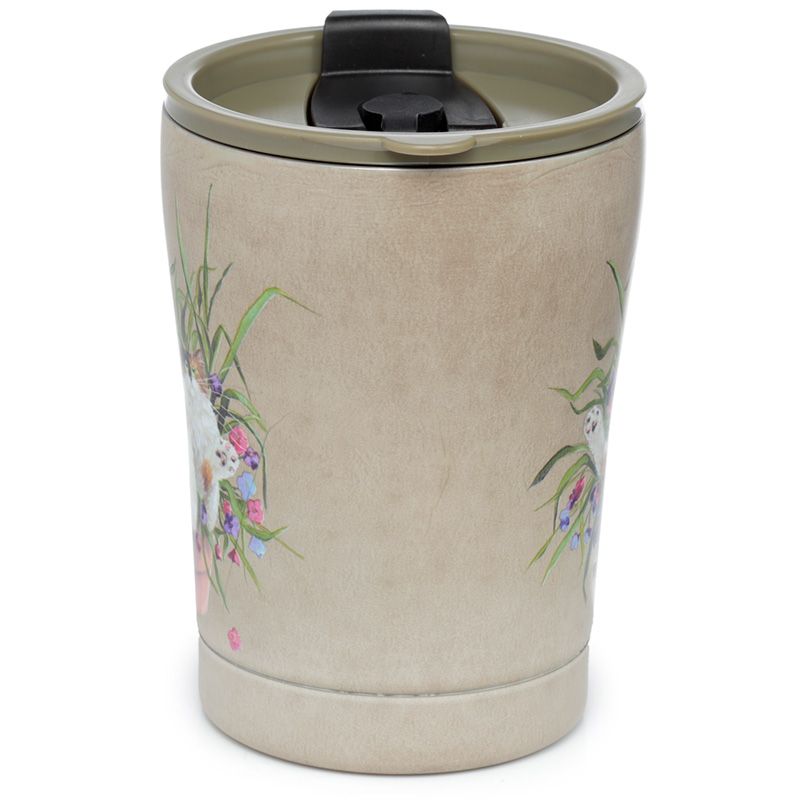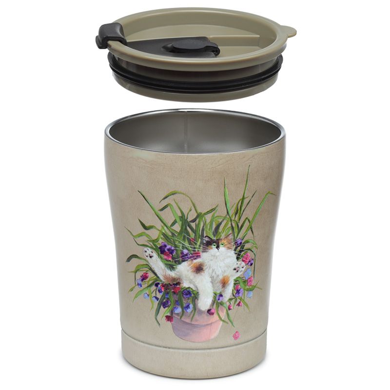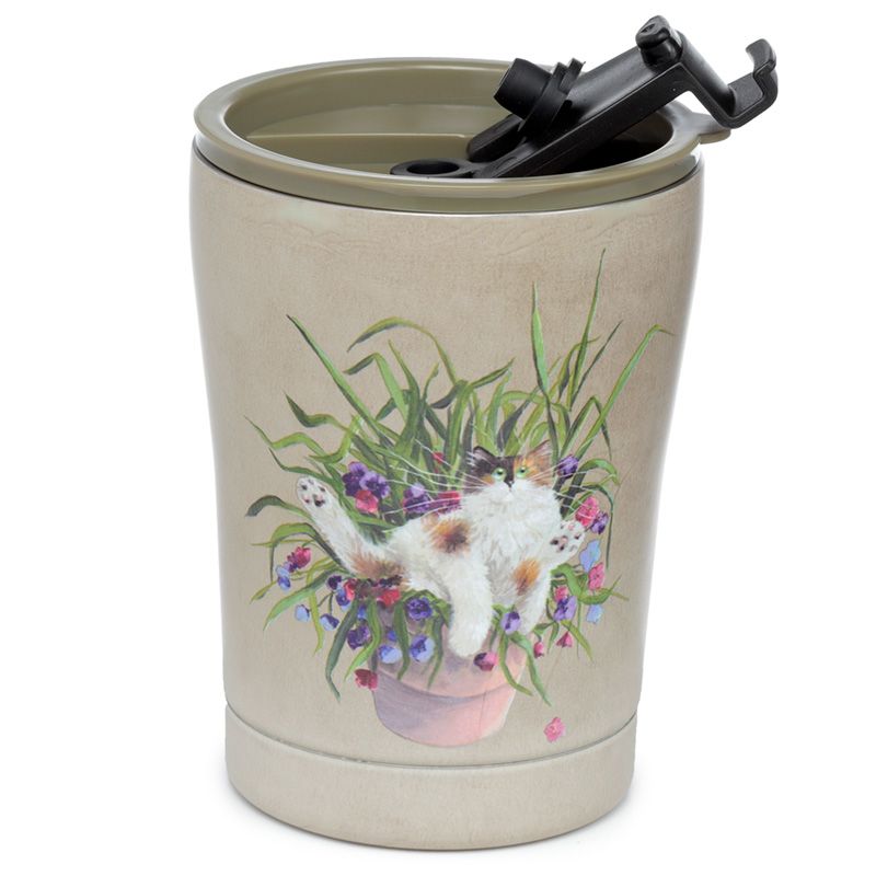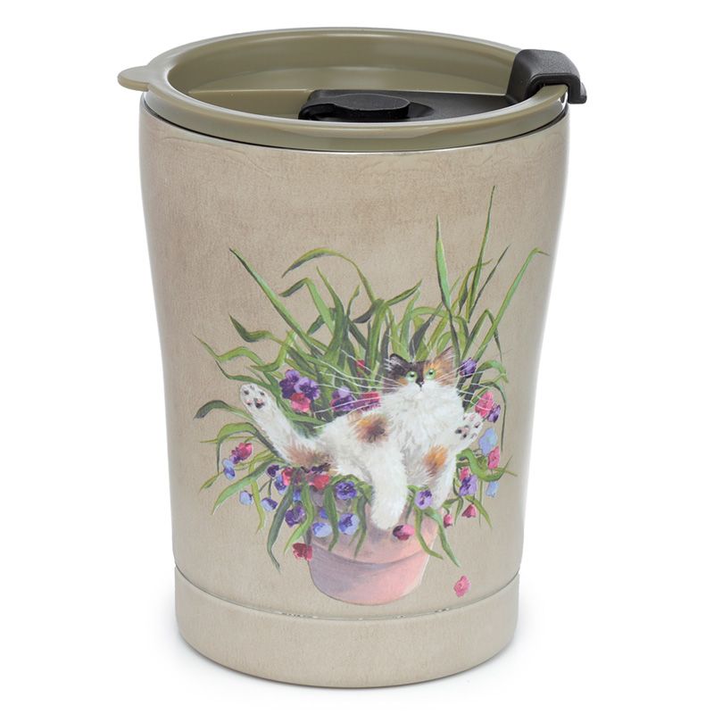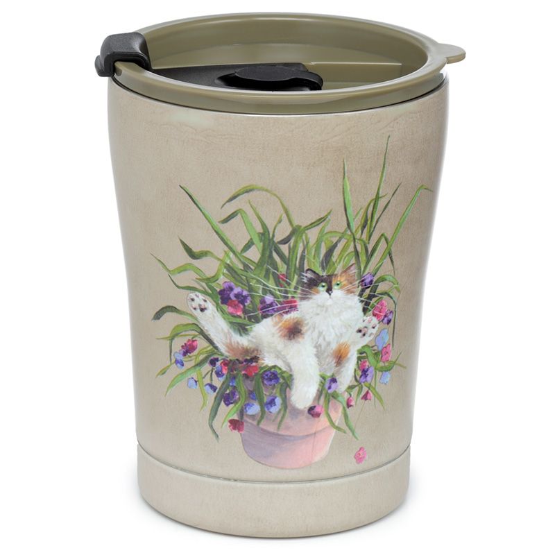 Copo Térmico Kim Haskins Gato Floral em Pote Vegetal Verde
