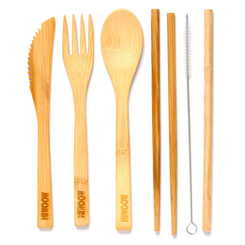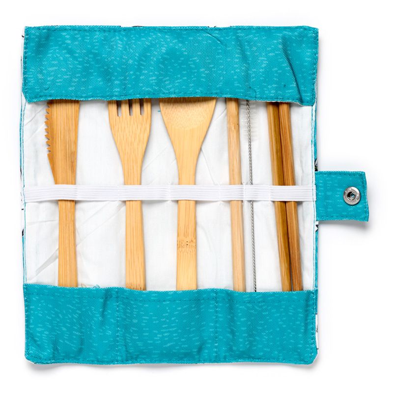 Conjunto de 6 peças de talheres 100% bambu em suporte de lona - Mumin