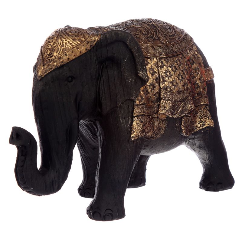 Estatueta de elefante tailandês médio preto e dourado escovado