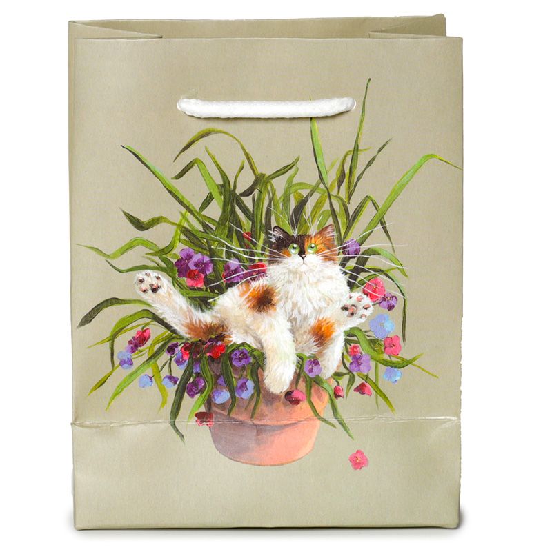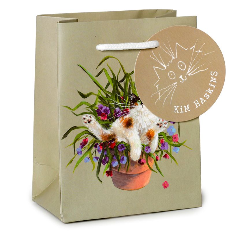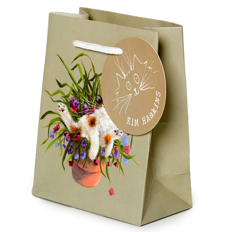 Kim Haskins Saco Verde de gato floral em vaso - Pequeno