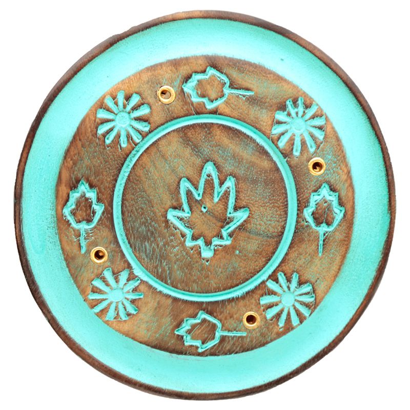 Queimador de Incenso redondo em madeira MANGO - Folha Verde