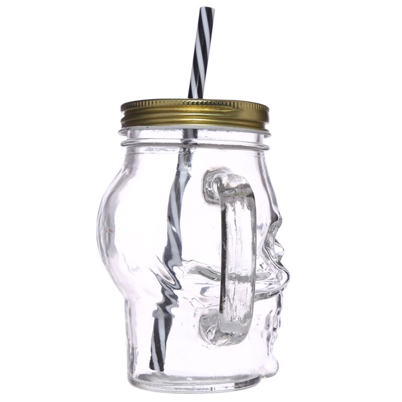 Jarra de Vidro com Tampa e Palha em forma de Caveira
