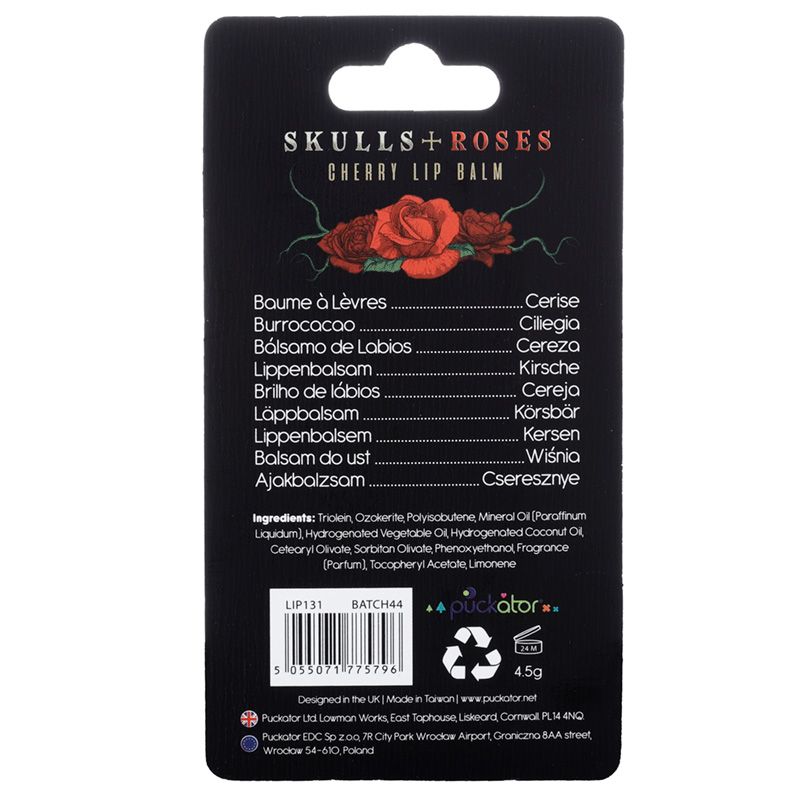Bálsamo de lábios de baton Caveiras e Rosas - Cereja