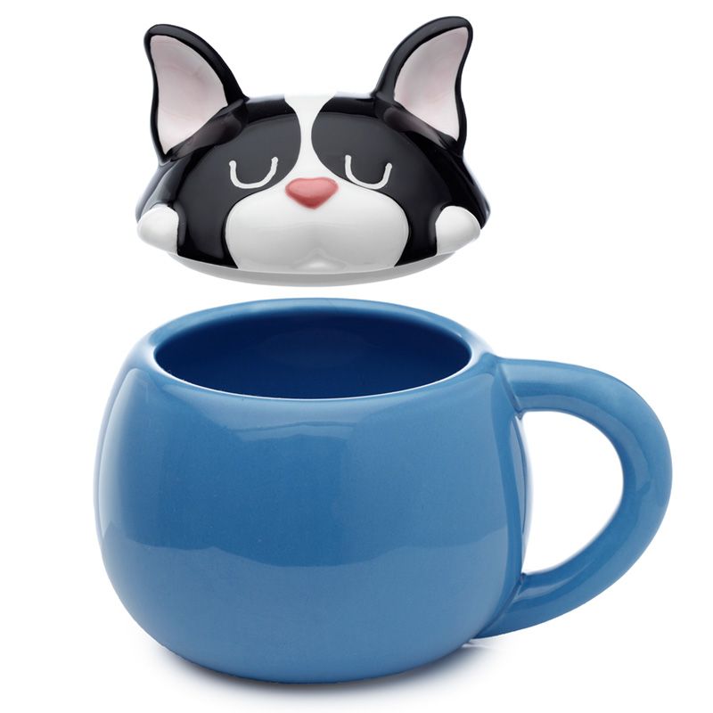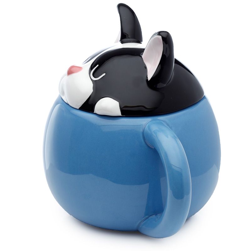 Caneca de cerâmica com tampas de animais - Bulldog Francês