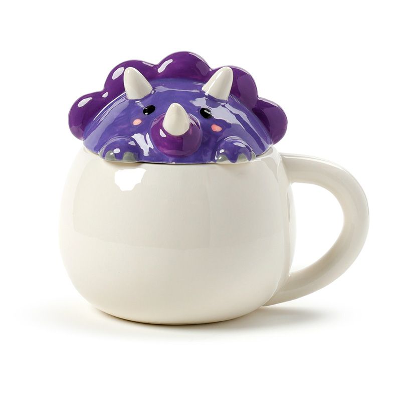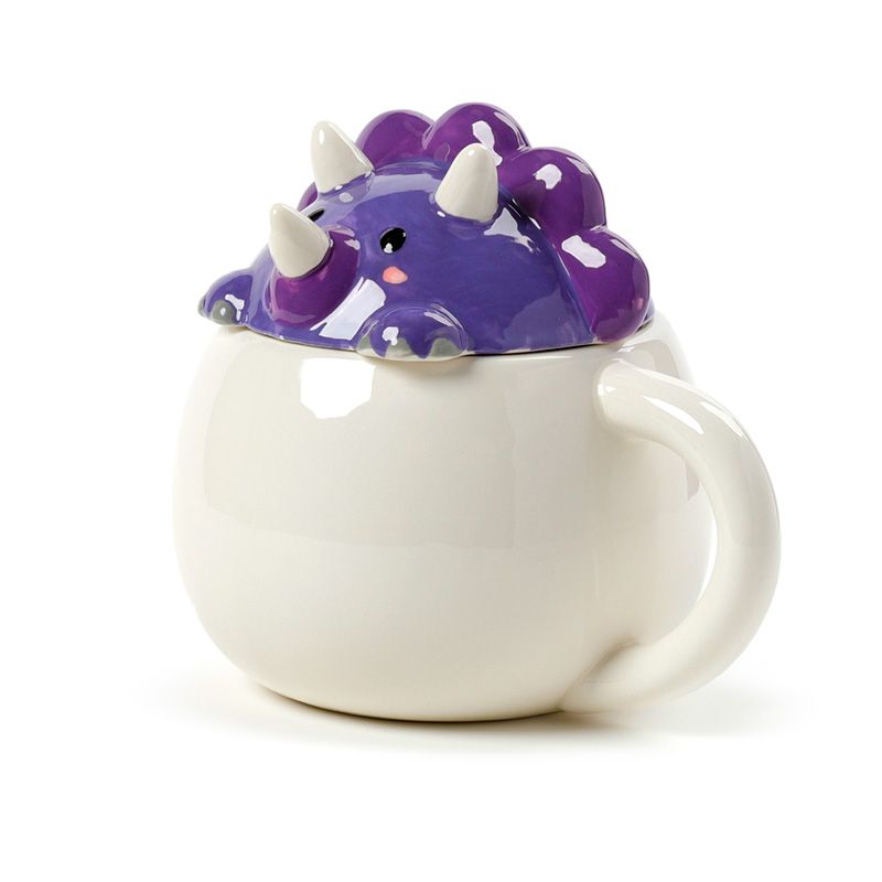 Caneca de cerâmica com tampas de animais - Adoramals Dinossauro roxo