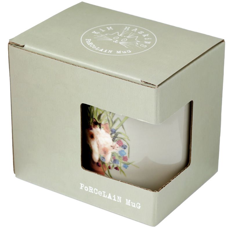 Caneca de Porcelana - Kim Haskins Gato em Pote Verde