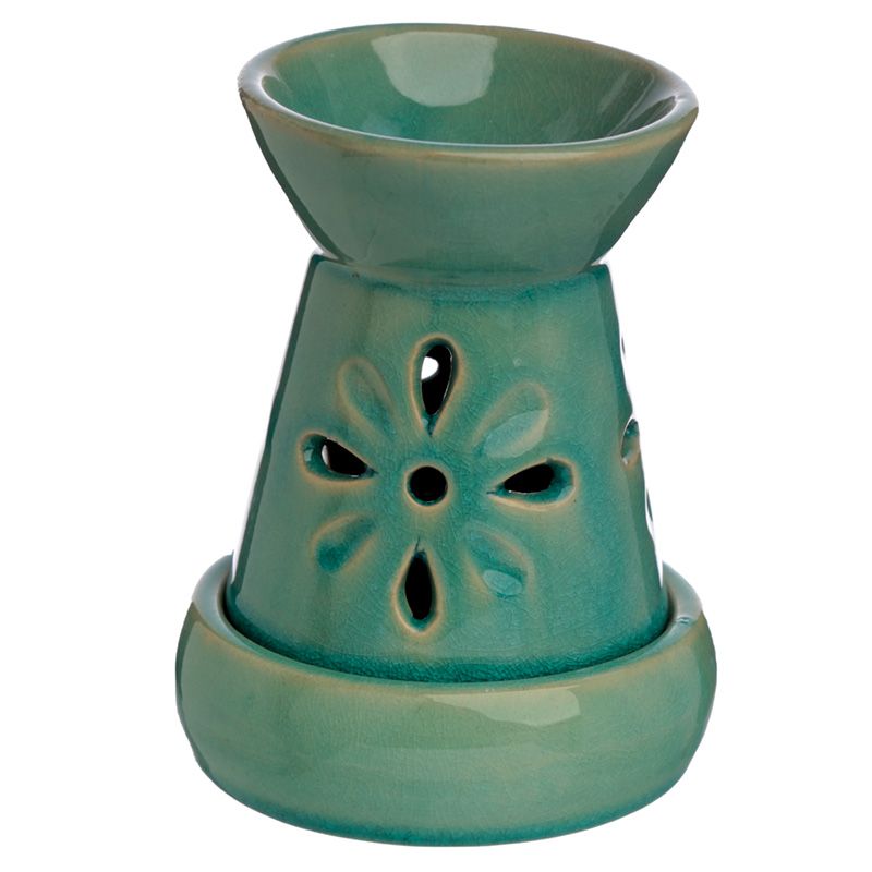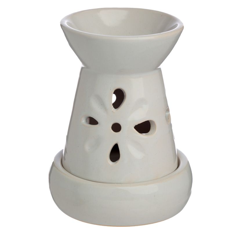 Queimador de Óleo de Cerâmica com Recortes Florais