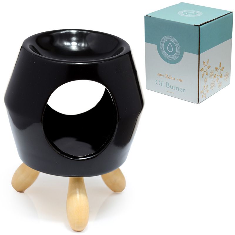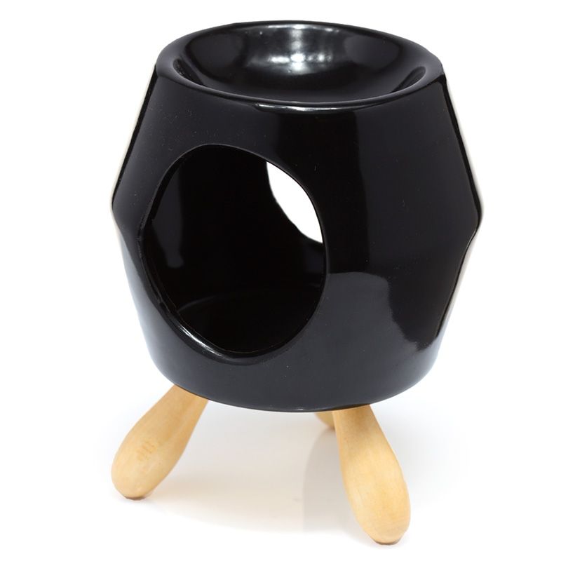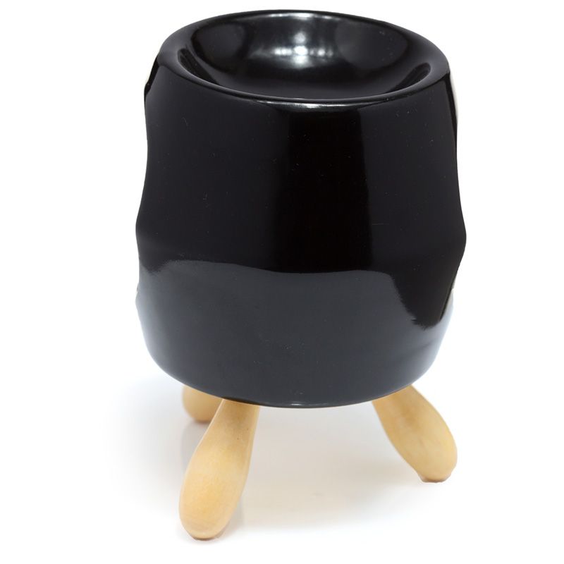 Queimador de Óleos em Cerâmica com Pés - Abstrato Preto