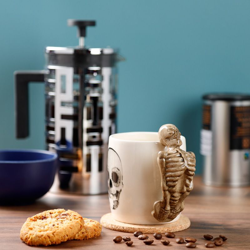 Caneca de cerâmica com Asa em forma de Esqueleto