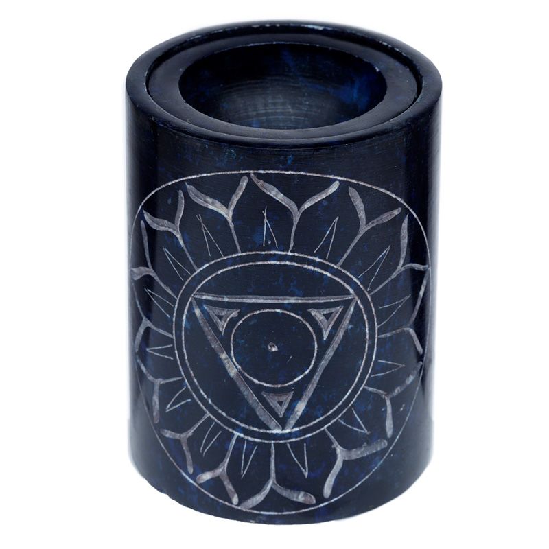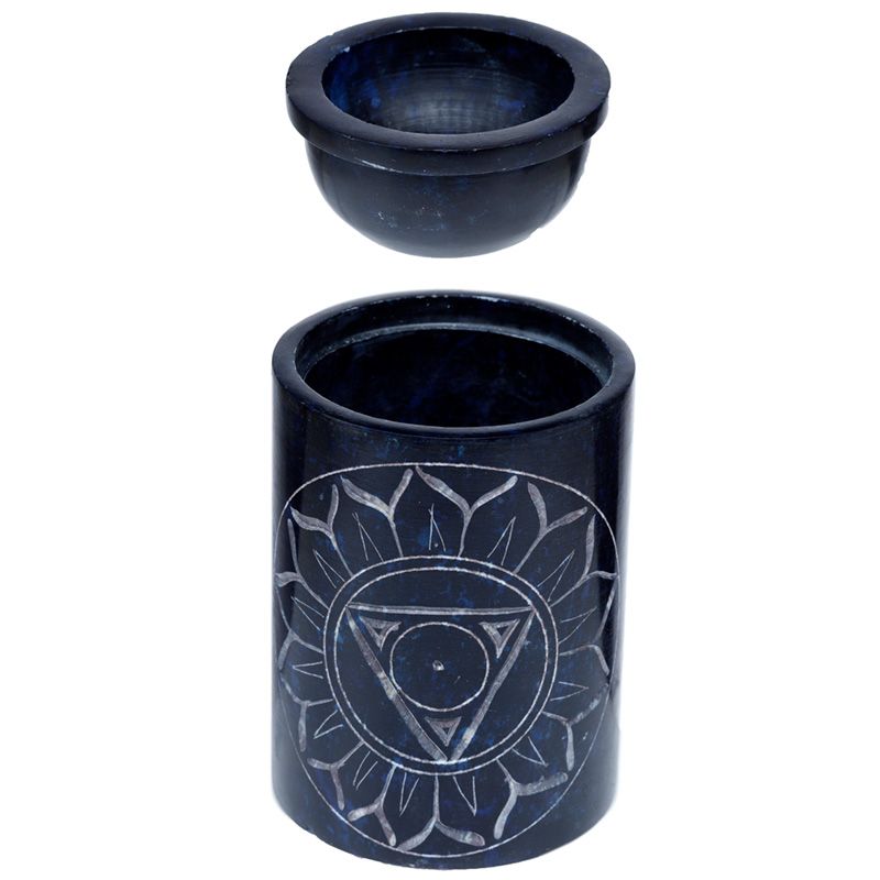 Queimador de óleo azul escuro esculpido em pedra sabão - Chakra