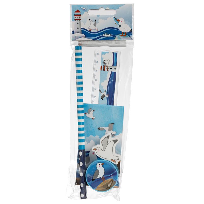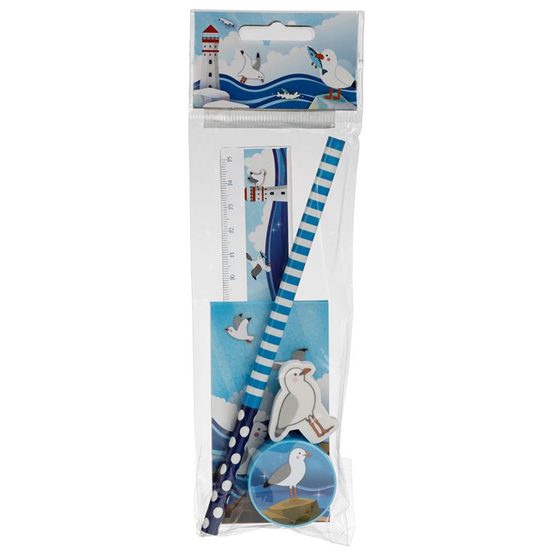 | Dimensões | Ruler 15cm Lápis 17.5cm Borracha 3x2-3x0.5cm notepad 9.5x5cm Apontador 3.5x3.5x1.5cm |