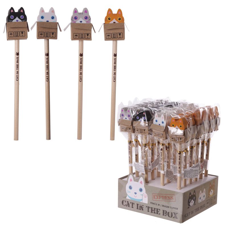 Lapiz e borracha Caixa com Gato
