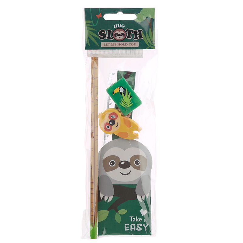 | Dimensões | Lápis Comprimento 17.5cm Ruler 15cm Borracha 4x2x0.5cm Apontador 1x2x3cm Pad 9x5x0.1cm |