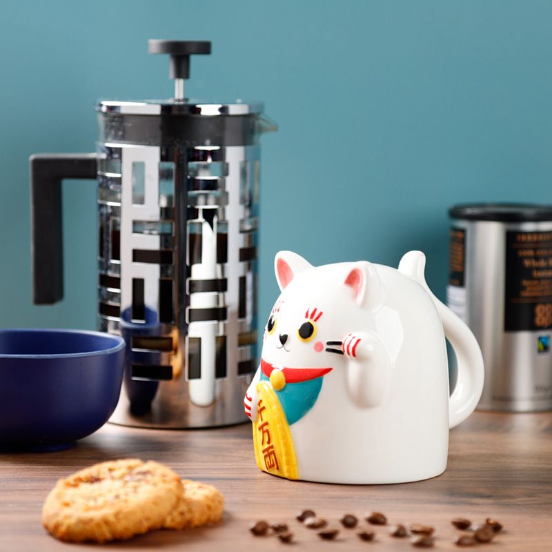 Caneca de Cerâmica ao Contrário - Gato Chinês da Sorte Maneki Neko