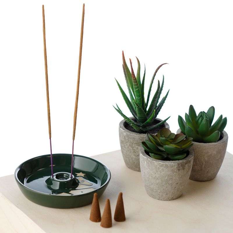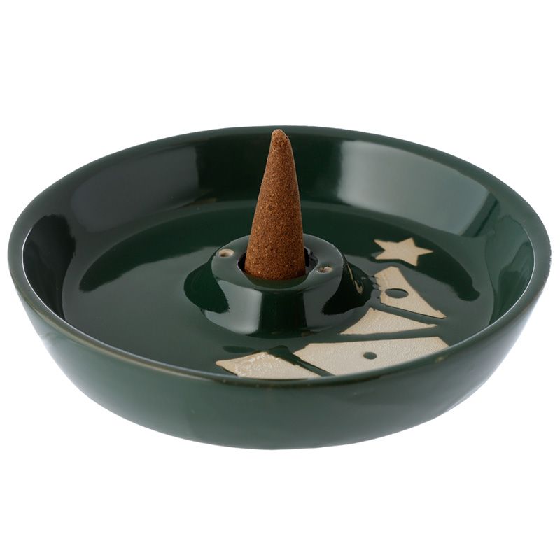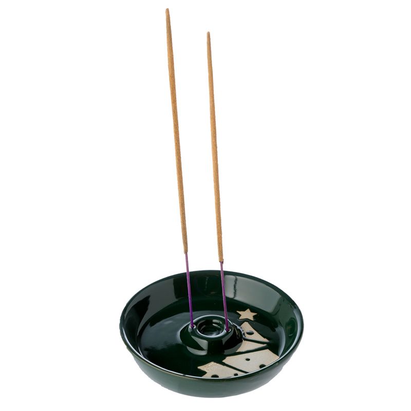Prato de incenso cor verde com relevo esmaltado - Árvore de Natal