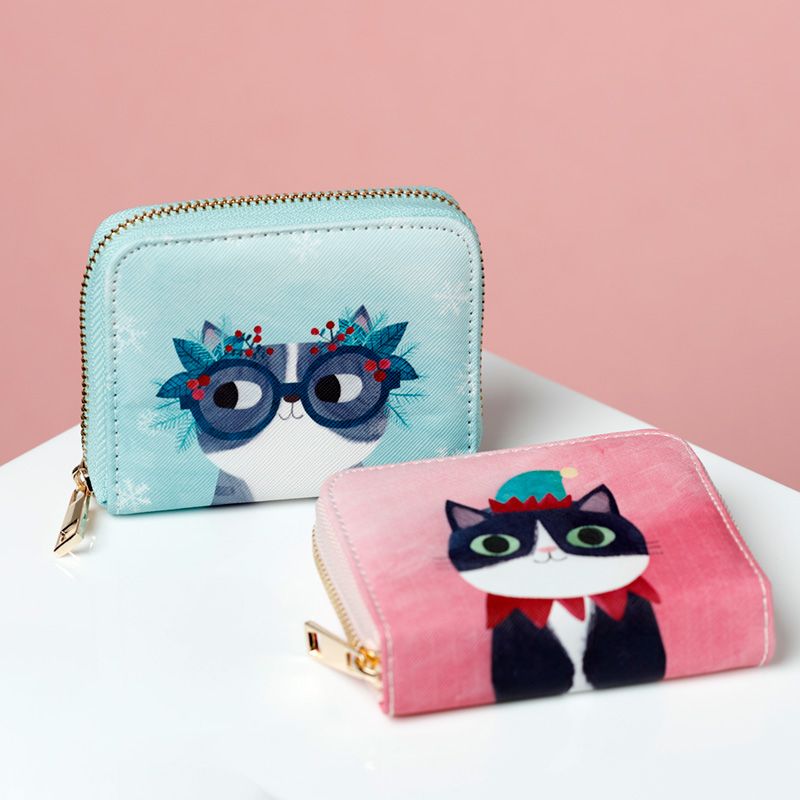 Angie Rozelaar Planet Cat Carteira pequena de Natal com fecho Zip